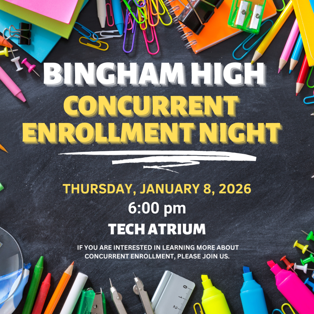 Concurrent Enrollment (CE) classes are college level classes offered to high school students for both high school and college credit. College credits are recorded on a permanent college record and transcript and high school credits are recorded on the high school transcript. CE classes taught at Bingham are from Salt Lake Community College, Weber State University and University of Utah. Please note: Although Concurrent Enrollment drop deadlines differ from the Jordan School District drop deadlines, students deciding to drop Concurrent Classes mid quarter/semester must take the grade earned and it will go on their Bingham transcript.